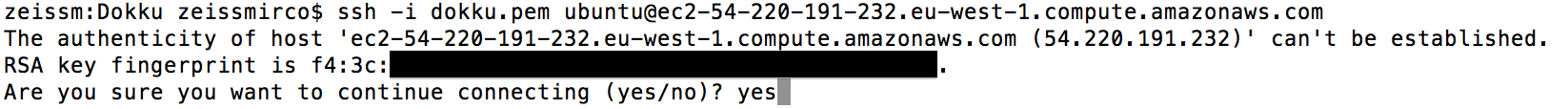 where you put the previously downloaded “docker.pem” file. Then run chmod 400 dokku.pem to change the permissions for your