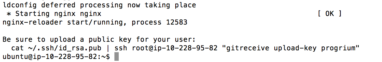 Then you have to run gitreceive upload-key progrium as an admin with sudo. It doesn’t say it in the success message