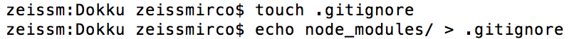 Run touch .gitignore and echo node_modules/ > .gitignore to set up this file.
